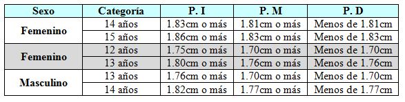 De las mostradas en el trabajo se incluyen la clasificación nacional de jugadores según su estatura (FCVB 2003-2005-2010) determinando los distintos tipos de perspectivas.