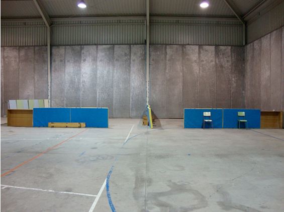 Eliminar del juego una pared lateral (la que no nos ofrece el muro del polideportivo) para reforzar las de fondo. Las paredes laterales tienen menor relevancia en el juego que las de fondo, por lo que la esencia del juego no se verá muy afectada.