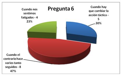 Pregunta 6. Sabes en qué momento pedir el tiempo para comunicarle a tu pareja una acción táctica a variar en el juego.