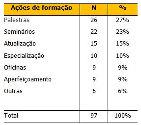 Tabela 3. Modalidades de ações de formação na área de treinamento