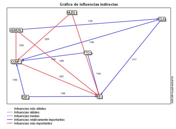 El método MICMAC permite clasificar las variables según sus relaciones directas e indirectas, determinando que las variables más importantes en el análisis de la situación actual del sistema son las motrices (más influyentes y poco dependientes) y las de enlace (muy influyentes y dependientes, siendo altamente inestables), que se muestran en la Figura 1.