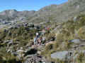 A medida que se va cobrando altura los hitos se aproximan entre sí pero también crece la pendiente, se camina más lento, se respira con dificultad. El cañón es el paso inevitable.