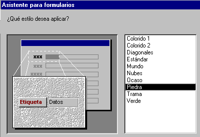 Hemos visto hasta ahora que la forma de introducir datos en las tablas no tiene el aspecto de una aplicación profesional ya que estamos trabajando directamente con las tablas. Para conseguirlo, confeccionaremos formularios, que sirven para introducir datos, pero de una forma agradable para el usuario.Para realizar un formulario, nos situaremos en la ficha de Formularios y pulsaremos Nuevo. Escogeremos el Asistente para Formularios. Realizaremos un formulario sobre la tabla de ATLETAS, escogiendo esa tabla en la lista desplegable: