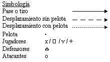 1. De 3 jugadores. El jugador C efectúa un pase en dirección a A y lo ataca rápidamente. A cruza la pelota en diagonal hacia B que realiza el apoyo.