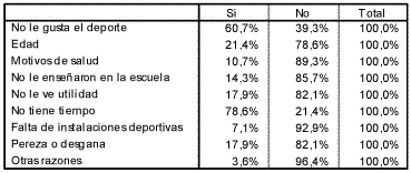 Tabla 10.Distribución de frecuencias según la motivación para no practicar deporte.