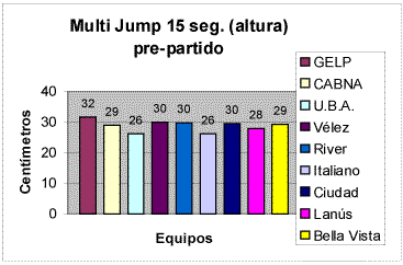 Los valores que se mostrarán en este artículo son los valores promedios de los equipos y los 20 mejores saltos individuales (C.M.J. y M.J. 15 seg.)