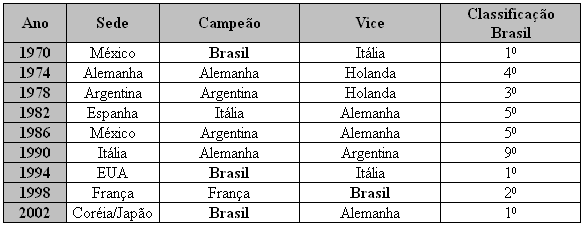 Participação do Brasil no Campeonato Mundial de Futebol - 1970 a 2002Já os primeiros anos da década de oitenta correspondeu ao início da redemocratização do país. Manifestações nas ruas e greves nacionais exigiam a democratização e realização de eleições diretas. A criação de novos partidos e o surgimento de novas lideranças políticas - entre outros, a criação da CUT-Central Única dos Trabalhadores, do Partido dos Trabalhadores e o surgimento da liderança sindical e política de Luiz Inácio "Lula" da Silva - coincidiam com um movimento futebolístico histórico: a chamada "Democracia Corinthiana", muito provavelmente uma resposta à disciplina militar implantada nos clubes e no selecionado nacional.