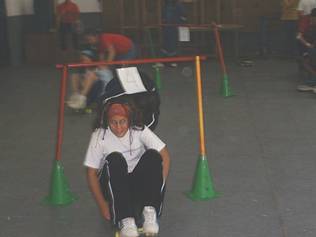 Se trata de completar un recorrido formado por puertas muy bajas sin derribar ninguna.