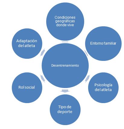 Existen condiciones que deben ser tenidas en cuenta en el desentrenamiento y no solamente las condiciones propias del deporte, como lo demuestra el siguiente esquema elaborado por los autores de este artículo.