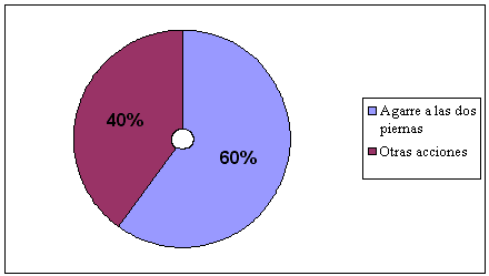 Campeonato de España Júnior 2005: Categoría 84 kgEn la tabla 5 se puede apreciar un total de técnicas superior a la media, aunque el porcentaje de agarre a las dos piernas se sitúa al entorno al 60% (ver figura 5).
