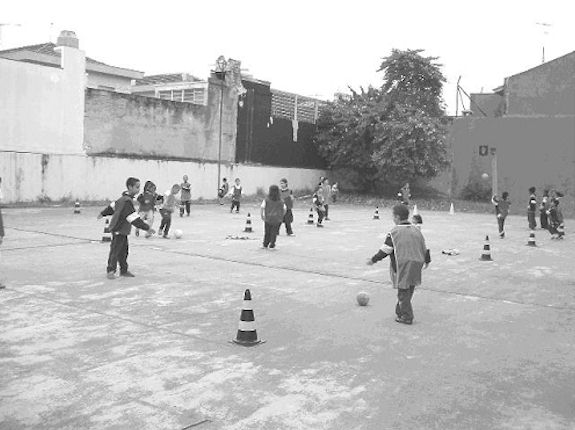 Queimada - Na atividade proposta para o desenvolvimento motor com ênfase na percepção manual de receber e arremessar a bola, a queimada tem se mostrado ao longo dos anos extremamente importante. Porém o que se observa é apenas uma bola e em média 35 alunos do ensino fundamental ou médio nas escolas. Neste caso o desenvolvimento da atividade queimada que proporemos é ultrapassar o conceito tradicionalmente utilizado nas escolas e propor uma maior variedade de movimento.
