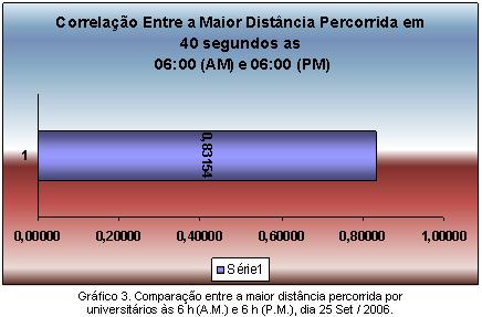 Também observamos um aumento bastante significativo na distância percorrida pelos acadêmicos no período da tarde, onde obtivemos para essa valência uma correlação de 0,83154.