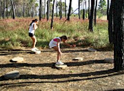 MÓDULO 03: TRAVESSIA DE CÓRREGO. Saltar de ponto em ponto através de um percurso em ziguezague construído de pedras chatas ou discos de madeira, com um ou ambos os pés, imitando a travessia de um córrego sobre pedras. Duração mínima: 5 minutos.