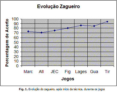 Devido ao não registro da FC em 4 partidas, ficamos impossibilitados de dizer qual FC otimizaria um melhor proveito da mentalização. Vale reforçar, entretanto, que no exercício de mentalização o qual o atleta obteve maior FC, na partida correspondente, o atleta acertou 100% dos passes executados. Observando a evolução deste atleta, comparando sua média de acertos no início do campeonato (4 primeiras rodadas) com o final do campeonato (5 últimas rodadas), observa-se uma evolução de 67,25% de acertos para 84,4% de acertos.