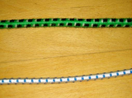 Sencillas, baratas y fáciles de conseguir. Aunque lo ideal es hacernos con las gomas de látex (gomas de quirófano) que se venden en las ortopedias, también podemos emplear las cintas elásticas propias del ámbito del fitness, así como las que se venden en las ferreterías para usos no deportivos (de diferentes grosores/resistencias) (Fotografía 1 y 2)