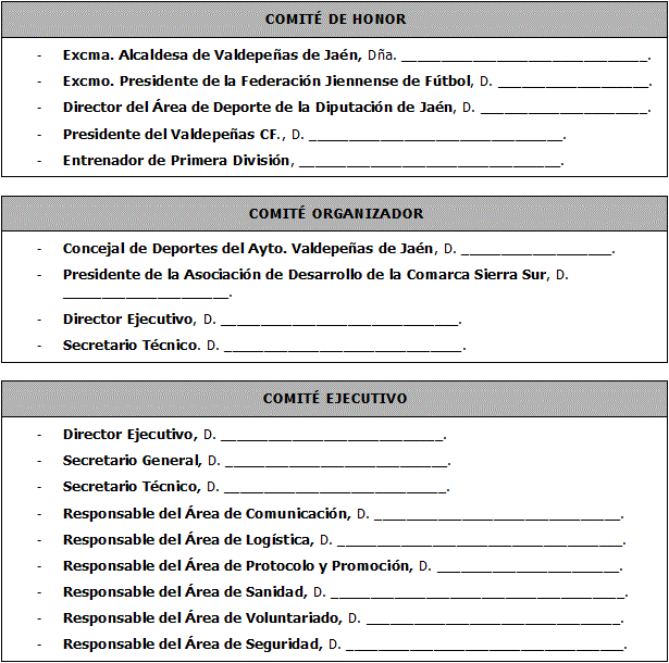 En el supuesto caso de que el evento sea viable, deberá elaborar un programa que explique la realización del "Primer Trofeo Ciudad de Valdepeñas de Fútbol Sala".