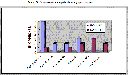 En relación a la categoría grupo colaborador hace referencia a las opiniones, tanto positivas como negativas, relativas al funcionamiento del grupo de trabajo (trato personal, intercambio de experiencias…), y a las reuniones efectuadas.![]()
