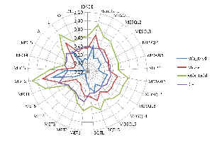Gráfico 2. Gráfico radar de Fernandes Filho das características dermatoglificas normalizadas por Curtose da categoria C2M da Seleção Brasileira de Canoagem Slalom