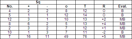 Evaluación colectiva de (+5) Muy bien, con 16 tantos positivos representando el 12 % de los 75 tantos obtenidos.