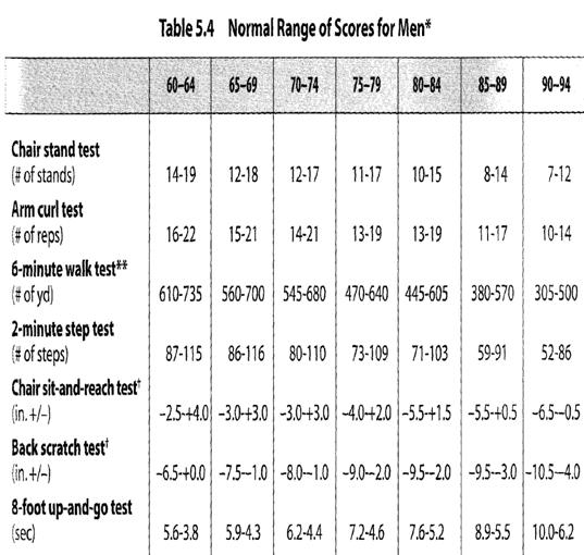 Es importante que los tests se acompañen de unos valores normativos de referencia para que los profesionales implicados en la valoración de las personas mayores puedan situar a su evaluado respecto de la población general de referencia en función del sexo y la edad. Realmente son escasos los estudios con población española que se centran en la valoración de la condición física funcional, por lo tanto es necesario desarrollar unos valores normativos de referencia que son tan demandados por los profesionales que trabajan con personas mayores para orientar su trabajo diario. No menos importante es además, determinar la puntuación mínima para detectar que una persona está en riesgo de sufrir dependencia con la intención de prevenirla mediante las medidas oportunas de incremento del nivel de actividad física, mejora del estado nutricional y de la alimentación.