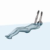 6. Posição horizontal dorsal, realiza o movimento ondulatório de pernas mariposa, levando um dos braços atrás e à coxa, enquanto o outro está parado junto ao corpo. Variante do exercício: trocando de braço; alternando braço Dto. com o braço Esq.; ambos os braços com movimentos alternados; movimentos ascendentes e descendentes de ambos os braços |