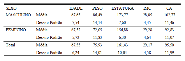 Tabela 2. Valores de Média e Desvio Padrão para as características antropométricas dos idosos