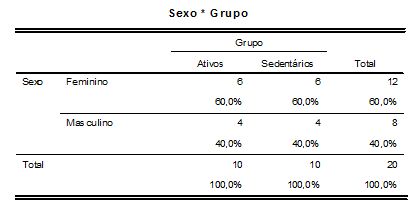 Foram entregues 20 questionários, 10 para o grupo de idosos corredores, e 10 para o grupo de idosos sedentários. A tabela 1 demonstra a distribuição do sexo entre estes grupos.