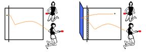 Saque corto. Debe quedarse en el campo contrario (entre la red y la pared). Obtendrá un punto.
