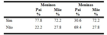 Tabela 1. Percentual de pais que ensinavam brincadeiras aos filhos