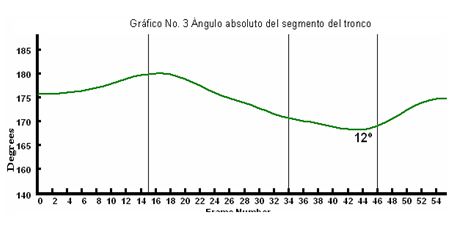 Analicemos entonces el comportamiento de la variación del ángulo absoluto del tronco durante todo el movimiento en cada fase (gráfico No. 3).