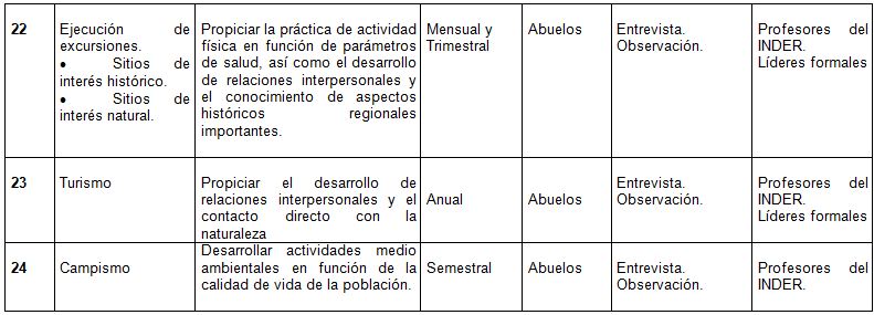 Determinación de las actividades que conforma la estrategia recreativa para las clases del adulto mayor en el círculo de abuelos de la Comunidad “Garrido- Caridad” del municipio Camagüey.