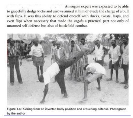 MARTINS (1989) 2 aceita a capoeira como o primeiro “esporte” praticado em Maranhão tendo encontrado referência à sua prática com cunho competitivo por volta de 1877. Considera que tenha sido praticada antes, trazida pelos escravos bandu-angoleses. Fugitivos, os negros a utilizavam como meio de defesa, exercitando-se na prática da capoeira para apurarem a forma física, ganhando agilidade: