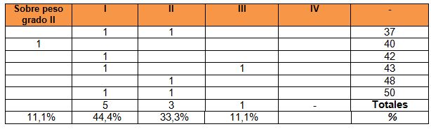 Con grado II, 5 mujeres representando el 55,6%