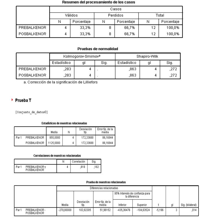 Tales resultados con el programa SPSS 18, con Licencia actualizada para la Universidad de Antioquia revisando normalidad y significancia de los cambios obtenidos se obtiene: