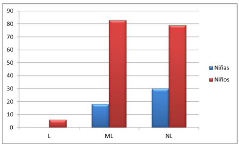 Las diferencias entre género, se presentan considerablemente en los niños, los cuales demuestran mejores resultados en el total de los test realizados, las niñas presentan valores más bajos en el total de los test aplicados.