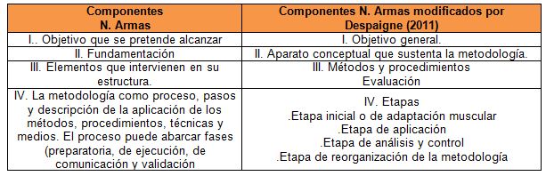 En el presente trabajo, se asumen los criterios de la Dra. C. Nerely de Armas en cuanto a los modelos, elementos y el orden lógico que componen una metodología así como los métodos para el desarrollo de la fuerza del Dr. Iván Román