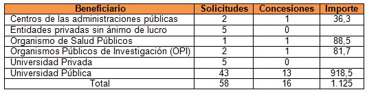 En esta primera convocatoria las universidades públicas obtuvieron el 68% de la financiación, convirtiéndose desde el inicio en las entidades de referencia a nivel estatal.