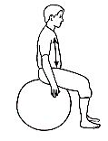 Sentado en el centro de la pelota, con la espalda erguida, pero relajada, con las manos apoyadas en la pelota con los brazos ligeramente hacia atrás y la cabeza mirando al frente.