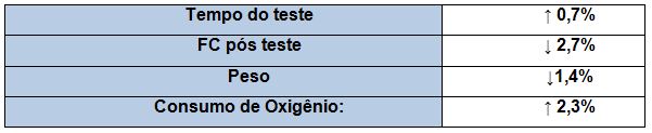 Tabela II. Resultados obtidos do Grupo B após intervenção do treinamento