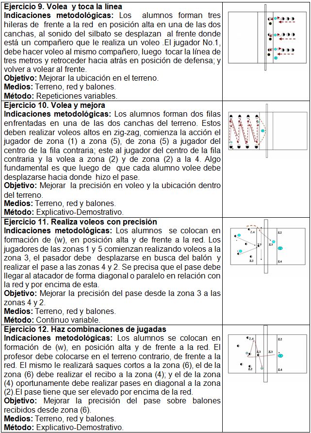 Las exigencias del voleibol actual, dejan en las manos de entrenadores y profesores de esta disciplina, la necesidad de formar en el alumno un pensamiento más productivo, partiendo de distintas condiciones que se unen para poder aplicar las distintas actividades propuestas en las sesiones de entrenamiento. Se impone la realización de unas series de ejercicios, que permitan se planifiquen con relativa facilidad de manera consciente el proceso de preparación técnico-táctica, que son utilizables en acciones de equipos, de grupos o individuales, lo que hace amplio el campo de acción en el orden metodológico.
