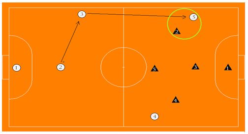 Objetivo – Sistema 3.1; marcação por zona; conhecimento das funções de alas, fixos e pivôs; treinar passes e finalizações do sistema; passe em profundidade para o pivô; maior espaço para o deslocamento dos alas, pivôs e fixos; tomada de decisão do pivô; deslocamentos do pivô nas laterais da quadra.