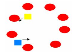 Parte principal 1. “Las 4 Esquinitas”: Dividida la clase en grupos de 5 personas, 4 de ellos se colocan en las esquinas, señaladas con aros y uno ocupa el centro. A través de la señal “¡ya!” que uno de ellos dice, los que están en las esquinas tienen que cambiar de aro intentando no quedarse sin él; y el del centro tiene que intentar no quedarse sin aro también. |