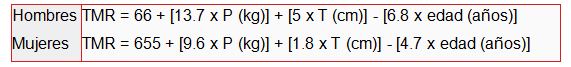 En primer lugar, veremos como calcular la Tasa Metabólica en Reposo (TMR), podemos hacerlo aplicando la fórmula que se expone a continuación según la O.M.S.
