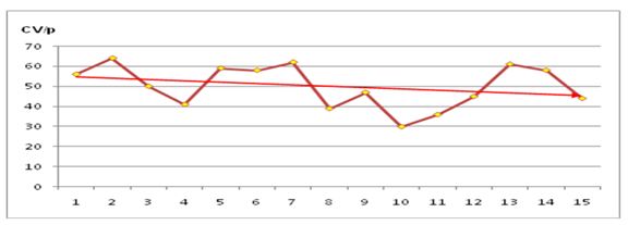 Sin embargo, como se puede apreciar en el Grafico 4, también existe tendencia al aumento del PWC Relativo, aunque en mucho menor grado, lo cual está determinado por el peso de algunos atletas, como los sujetos 4, 5, 8, 9 y 10