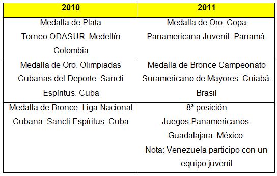 Cabe señalar que durante dos años la representación juvenil de Venezuela participó en varias competencias de su nivel y en la mayoría sus líberos fueron los más destacados en la defensa del campo, así como el equipo ocupo colectivamente una de las plazas entre los tres primeros en la defensa del campo