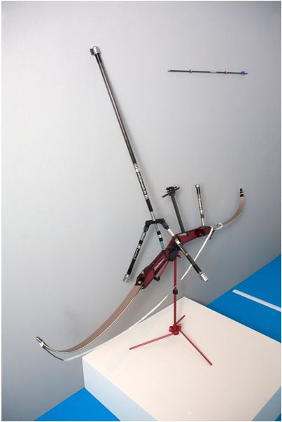 Bicicleta y arco con los que Samuel Sánchez y Alfonso Menéndez Vallín consiguieron el oro olímpico. Fotografías: Nacho Vela.