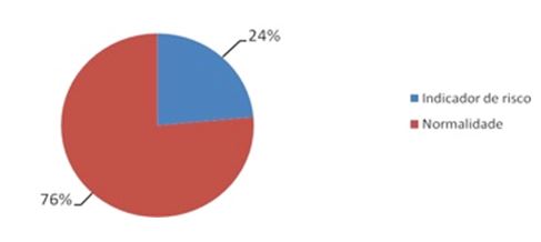 Observa-se através do gráfico 1 que 24%, somando quase ¼ da população pesquisada encontram-se com indicador de risco, referente ao ponto de corte do IMC.
