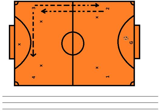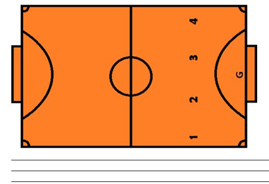 6. Analise a situação abaixo, a bola está com o goleiro, o número 4 deve deslocar-se e tomar a frente de seu marcador ou deslocar-se em direção do número 3? Por quê?