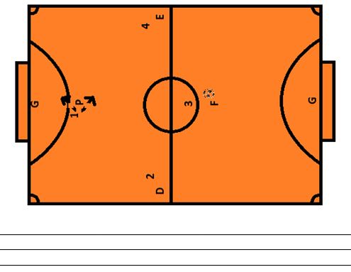 12. Analise a situação abaixo, F esta com a bola, sua equipe está sendo marcada no meio da quadra (linha 3), 1 deve marcar na frente ou atrás de P? Por quê?