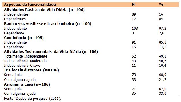 Tabela IV. Funcionalidade de idosos que residem na área de abrangência de uma Unidade de Saúde da Família, em Jequié-BA, 2011